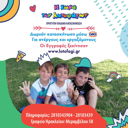 Το Heraklion Terra Camp έχει ανοίξει τις πύλες του και σας περιμένει! Υπόσχεται ένα αξέχαστο καλοκαίρι σε υπερσύγχρονες αθλητικές εγκαταστάσεις, στελεχωμένο με επαγγελματίες παιδαγωγούς. Ολοκαίνουργια γήπεδα ποδοσφαίρου και μπάσκετ Κλιματιζόμενη