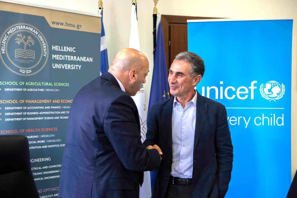 Συνάντηση είχε ο Πρύτανης του Ελληνικού Μεσογειακού Πανεπιστημίου (ΕΛΜΕΠΑ) Καθ. Νίκος Κατσαράκης με τον Διπλωματικό Εκπρόσωπο του γραφείου της UNICEF στην Ελλάδα Δρ. Khalil Ghassan, την Τετάρτη 11 Σεπτεμβρίου 2024, στο πλαίσιο προπαρασκευαστικών εργασιών υπογραφής Μνημονίου Συνεργασίας ( MoU) μεταξύ των δύο φορέων.