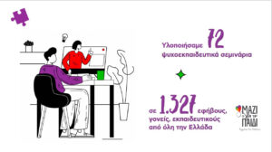 • Υλοποιήθηκαν 72 ψυχο-εκπαιδευτικά σεμινάρια σε 1.327 σε εφήβους, γονείς, εκπαιδευτικούς από όλη την Ελλάδα