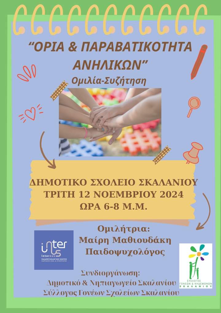 Δημοτικό σχολείο Σκαλανίου – Τρίτη 12 Νοεμβρίου 2024 – Ώρα 6-8 μ.μ.