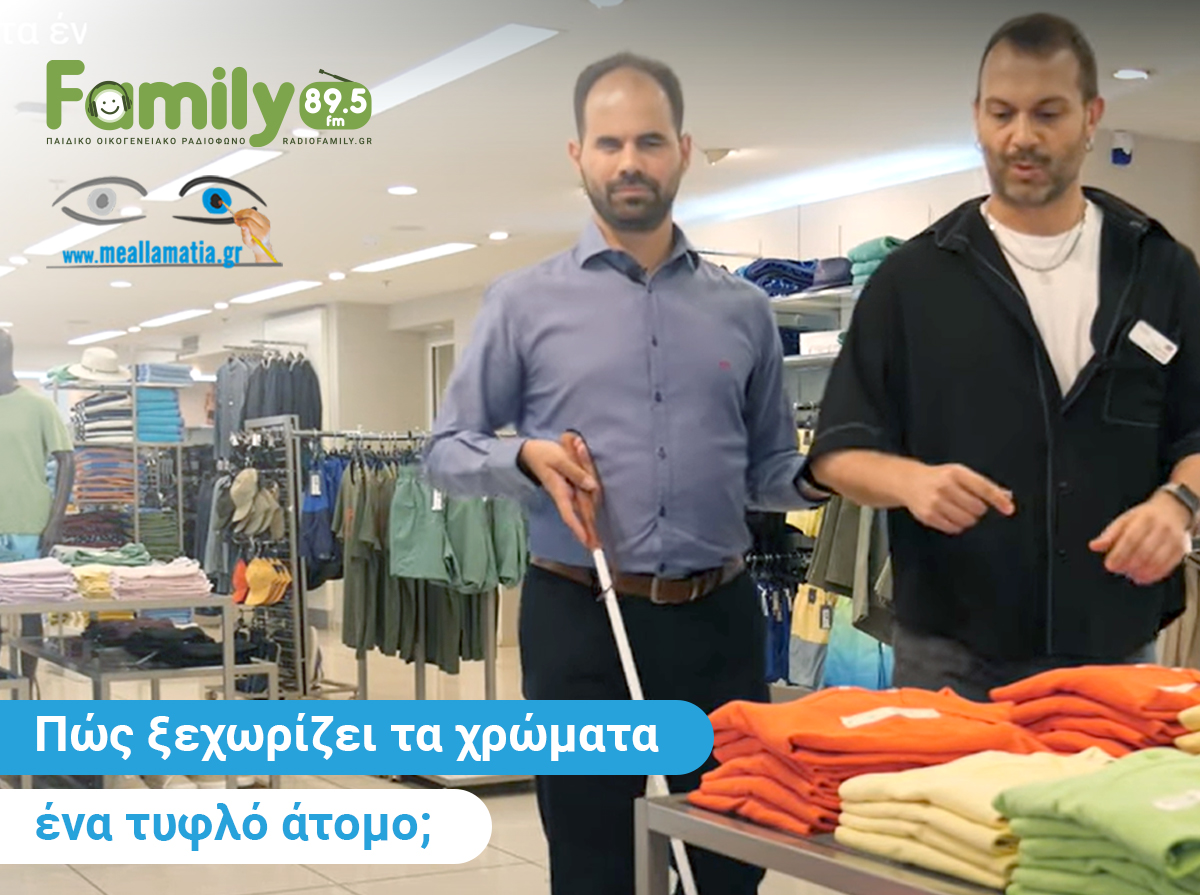Ο τυφλός δικηγόρος Βαγγέλης Αυγουλάς μας δείχνει έναν τρόπο που τα τυφλά άτομα μπορούν να αναγνωρίσουν τα χρώματα στα ρούχα που θέλουν να αγοράσουν, χρησιμοποιώντας την συσκευή Colorino.