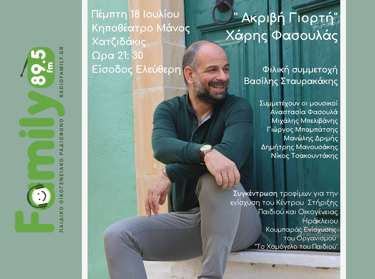 Σας προσκαλούμε στη μεγάλη συναυλία Κρητικής Μουσικής με τον Χάρη Φασουλά και την ευγενική φιλική συμμετοχή του Βασίλη Σταυρακάκη.