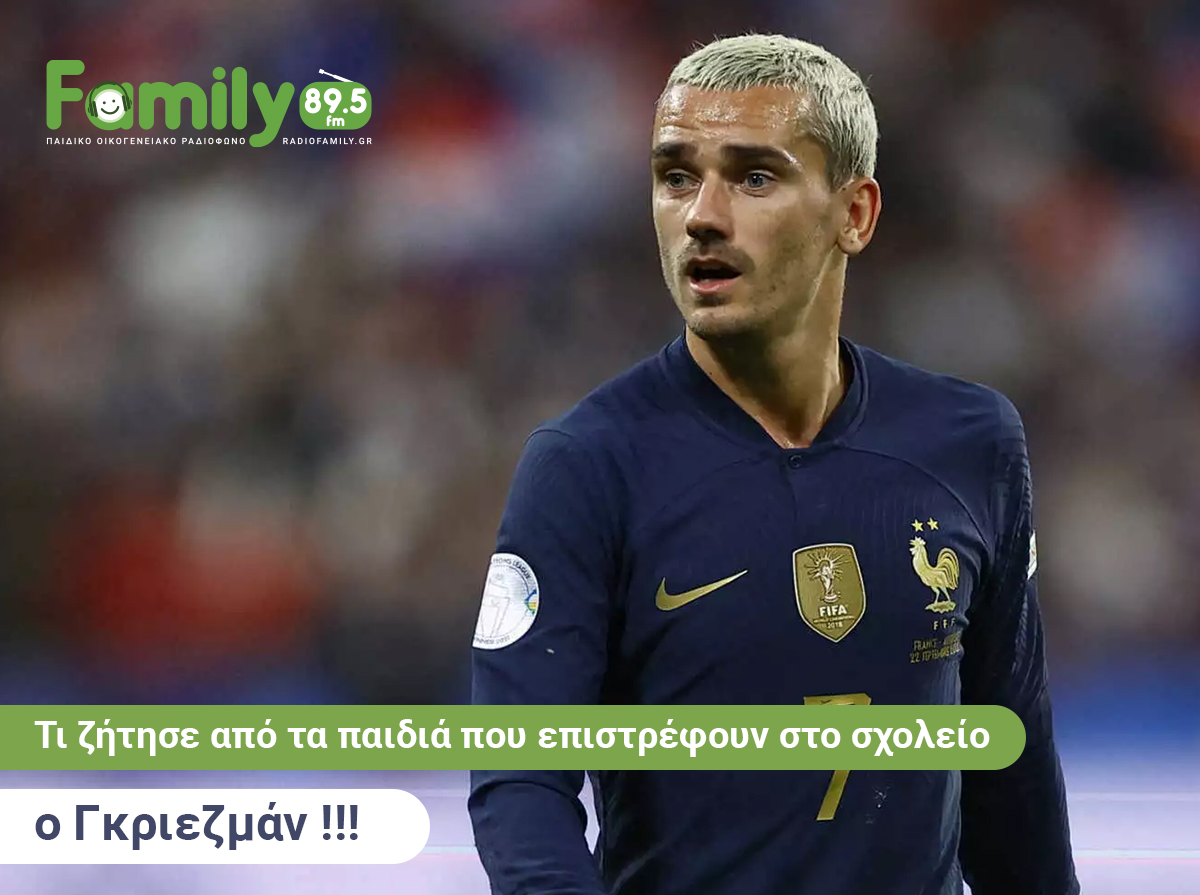Ο Αντουάν Γκριεζμάν είναι Γάλλος διεθνής ποδοσφαιριστής, ο οποίος αγωνίζεται ως επιθετικός με την Ατλέτικο Μαδρίτης, στην Ισπανία. Δείτε την ειδική πρόσκληση που στέλνει στα παιδιά που μόλις επέστρεψαν στο σχολείο!