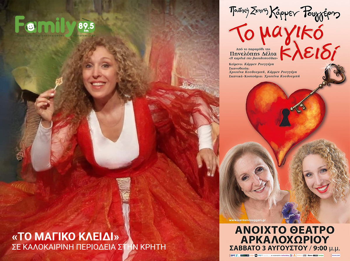 Όπως κάθε χρόνο, έτσι και εφέτος η «Παιδική Σκηνή Κάρμεν Ρουγγέρη» θα περιοδεύσει σε πολλές πόλεις της Ελλάδας, αυτή την φορά με: «ΤΟ ΜΑΓΙΚΟ ΚΛΕΙΔΙ». Η παράσταση που μάγεψε μικρούς και μεγάλους όλο τον χειμώνα γεμίζοντας το θέατρο ΚΙΒΩΤΟΣ, θα ξεκινήσει την καλοκαιρινή της περιοδεία από τις 8 Ιουλίου μέχρι τα μέσα Σεπτεμβρίου. Στην Κρήτη έρχεται στο Ηράκλειο στις 30 και 31 Ιουλίου, στα Χανιά στις 1 και 2 Αυγούστου, στο Αρκαλοχώρι στις 3 Αυγούστου και στο Ρέθυμνο στις 4 Αυγούστου.