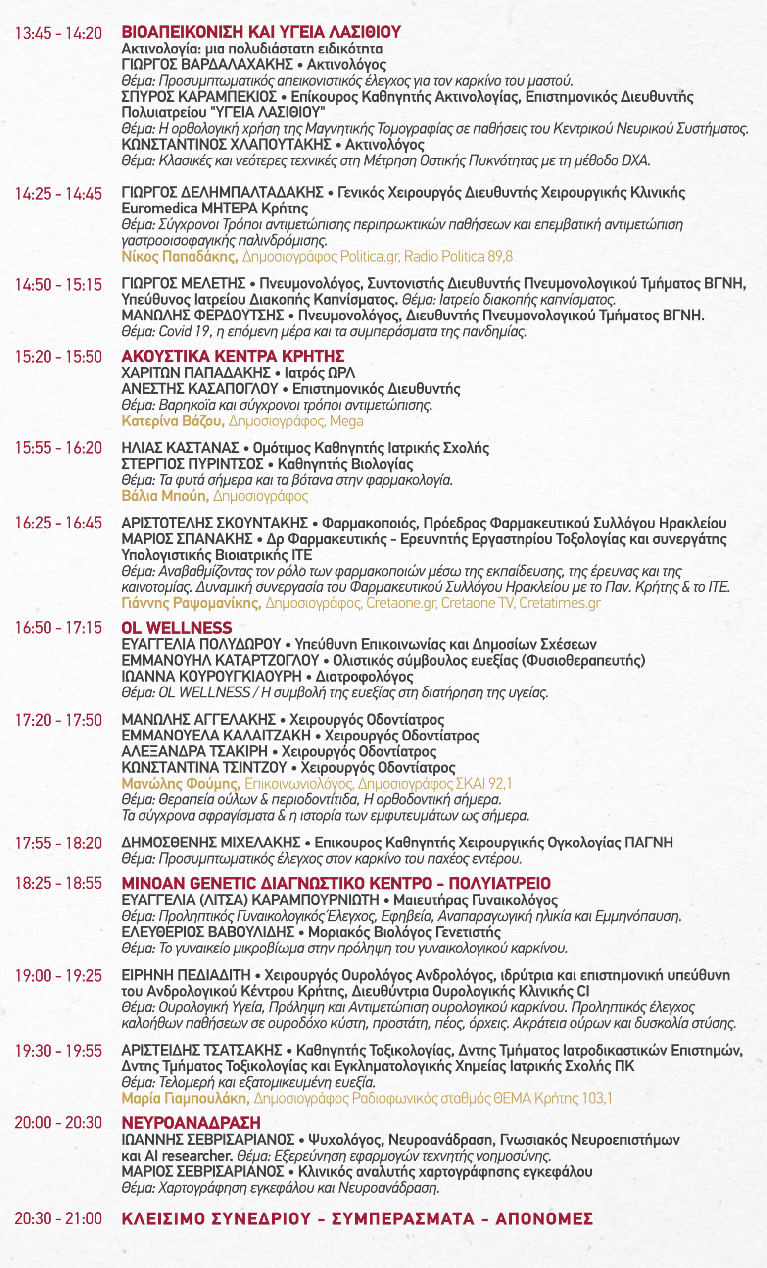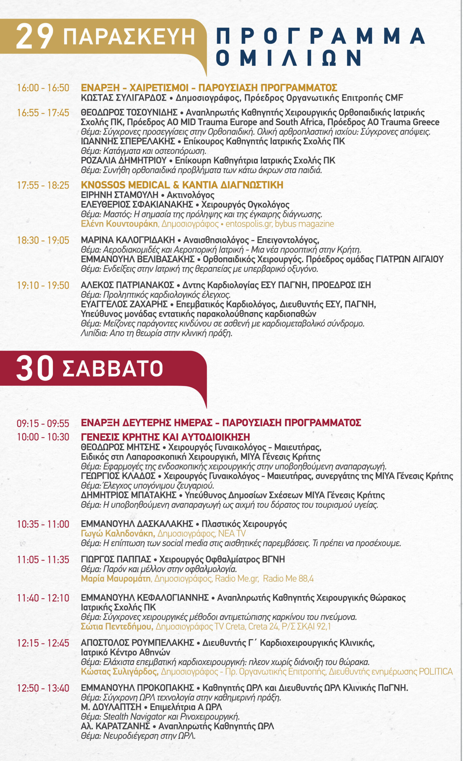Η φετινή διοργάνωση απλώνεται σε δύο ημέρες, 29&30 Νοεμβρίου στο ξενοδοχείο Ατλαντίς στο Ηράκλειο και φέρνει στο κοινό σπουδαίους ομιλητές από όλες τις βαθμίδες της Υγείας στο νησί, και από τους τέσσερις νομούς, με εξαιρετικά ενδιαφέρουσες ομιλίες.