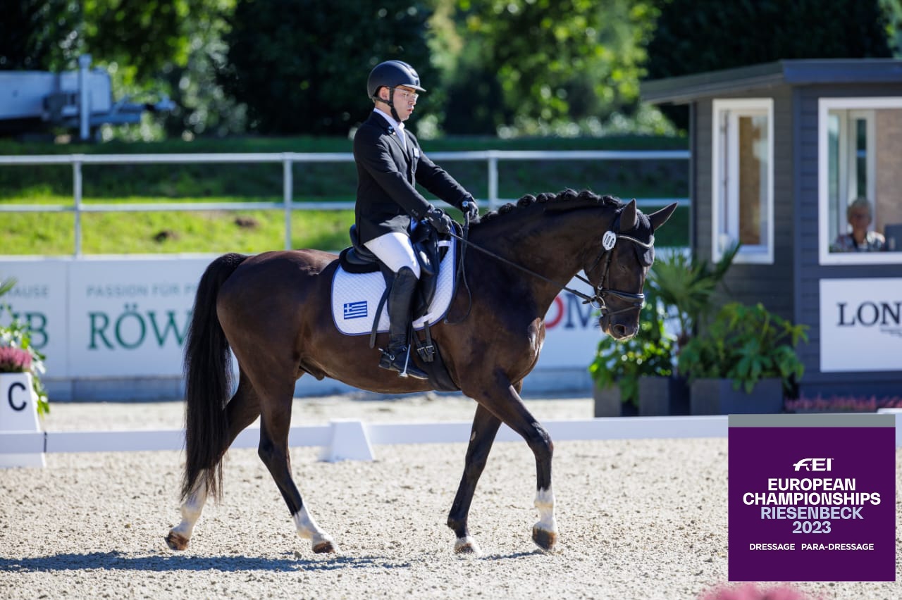 Ο Έλληνας αθλητής συμμετείχε μαζί με το άλογό του Eros CS στην κατηγορία Grade I. Την πρώτη ημέρα είχε ποσοστό 69,1% καταλαμβάνοντας την 9 η θέση και την δεύτερη ημέρα με μεγαλύτερο ποσοστό και ατομικό ρεκόρ 69,7% κατέλαβε και πάλι την 9 η θέση.