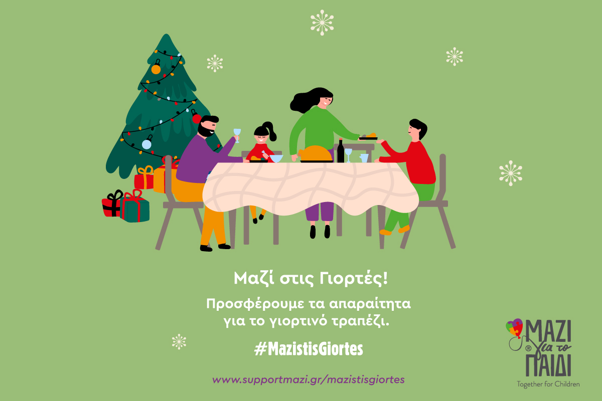 Σας προσκαλούμε να γίνετε μέρος της προσπάθειάς μας, αγκαλιάζοντας την πρωτοβουλία της Ένωσης «Μαζί για το Παιδί» να προσφέρει όλα τα απαραίτητα για το γιορτινό τραπέζι αυτών των οικογενειών.