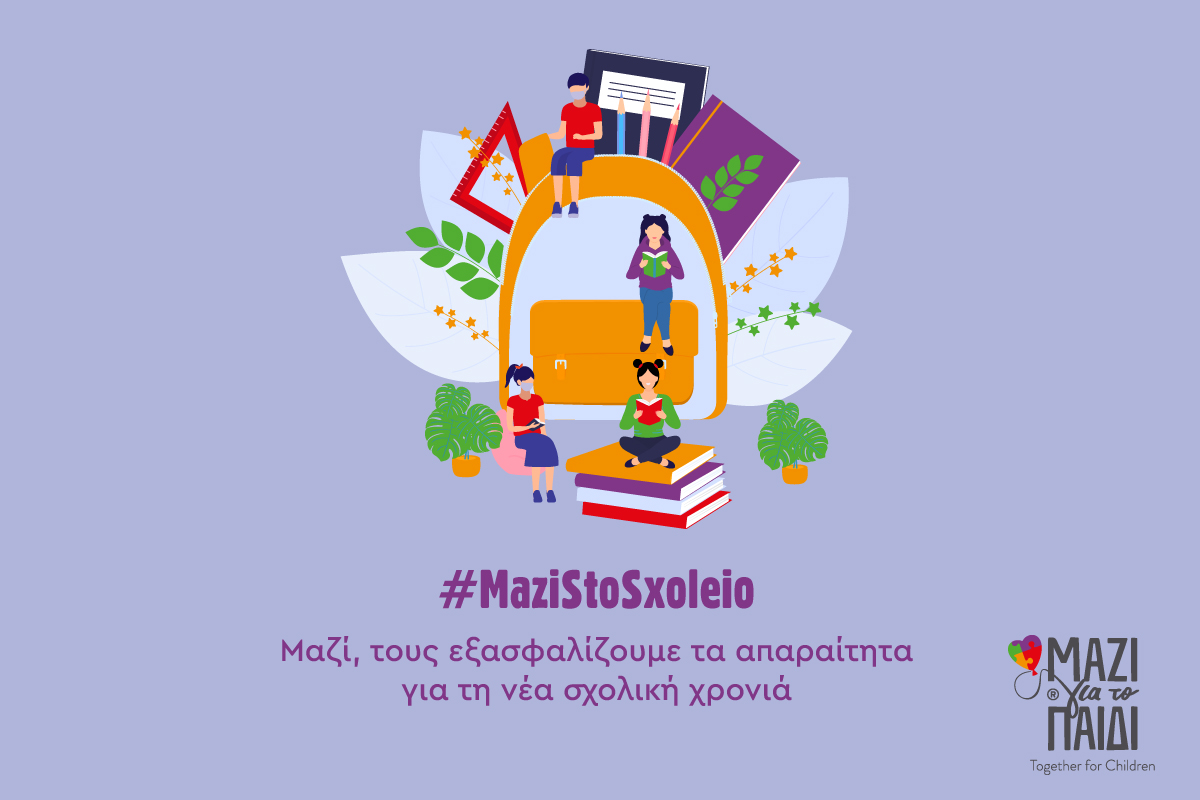 Υποστηρίξτε την πρωτοβουλία της Ένωσης «Μαζί για το Παιδί» να προσφέρει μια νότα αισιοδοξίας και τα απαραίτητα είδη για την έναρξη της νέας σχολικής χρονιάς. Ας γεμίσουμε τις τσάντες των παιδιών με τετράδια, γραφική ύλη και είδη ζωγραφικής συνοδεύοντας τα με την ευχή για μια καλή και δημιουργική σχολική χρονιά.