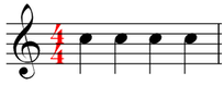 4/4 – τετράσιμος ρυθμός – 4 χτύποι τετάρτων σε κάθε μέτρο (Βλέπε εικόνα)