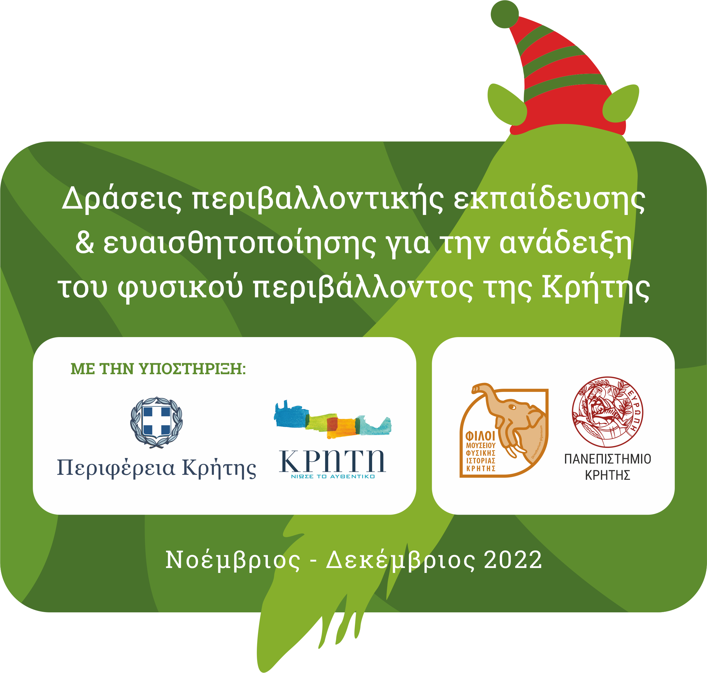 Η Περιφέρεια Κρήτης σε συνεργασία με τον Σύλλογο Φίλων του Μουσείου Φυσικής Ιστορίας Κρήτης υλοποιούν μία σειρά από «Δράσεις Περιβαλλοντικής Εκπαίδευσης & Ευαισθητοποίησης για την ανάδειξη του φυσικού περιβάλλοντος της Κρήτης».