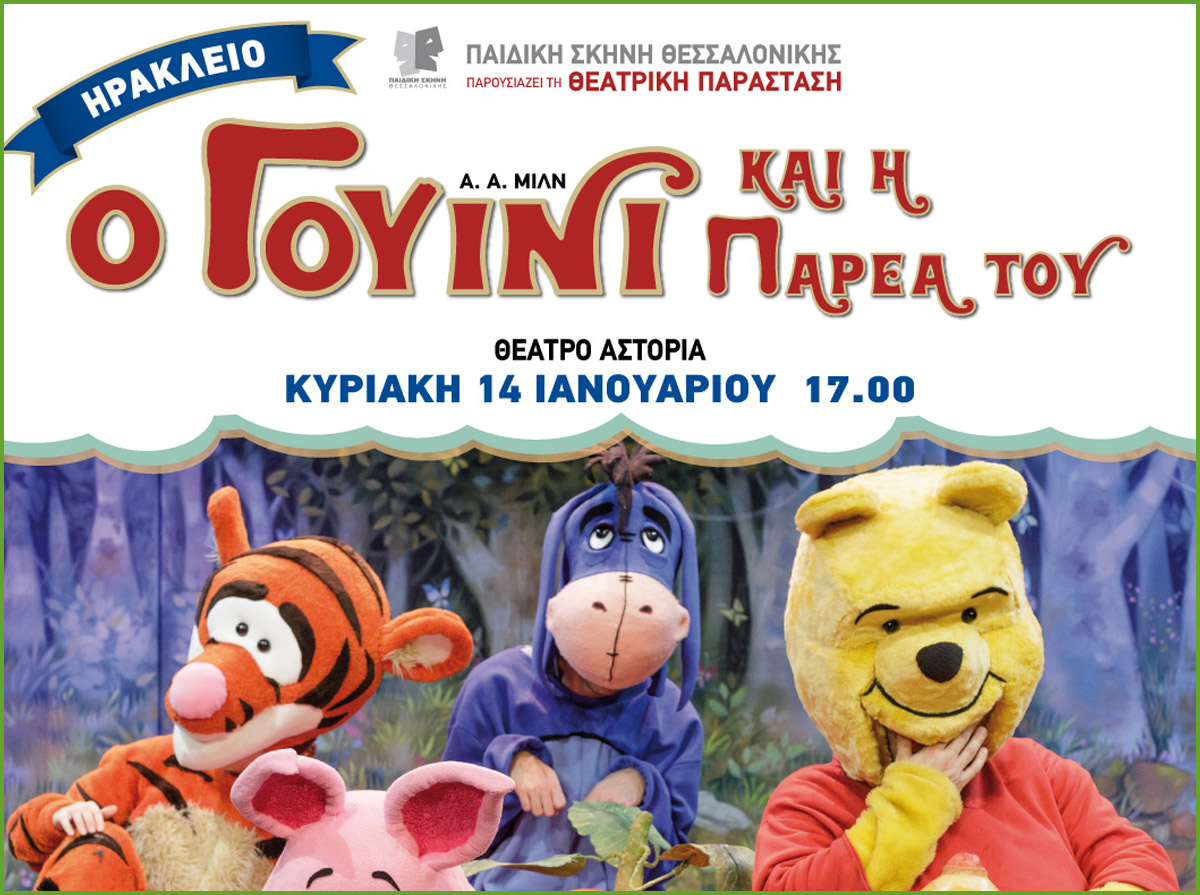Ελάτε να γνωρίσετε από κοντά τον Γουίνι και την παρέα του σε μια μοναδική μουσικοχορευτική παράσταση αφιερωμένη στην φιλία και στην αγάπη! Ελάτε να ζήσουμε όλοι μαζί την δική μας περιπέτεια!!!