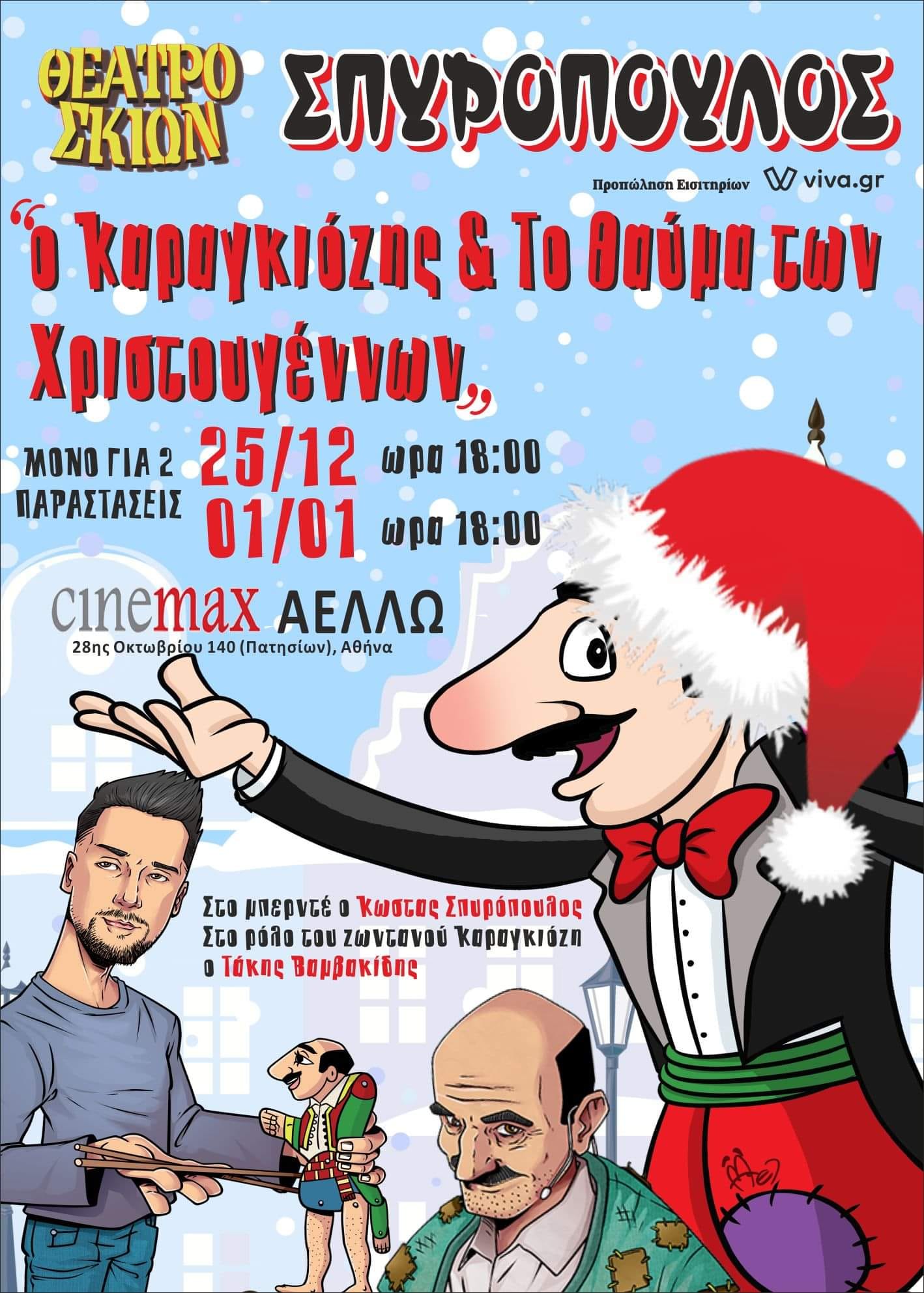 Ο καραγκιοζοπαίχτης Κώστας Σπυρόπουλος υποδέχεται μικρούς και μεγάλους για δύο μοναδικές παραστάσεις με τίτλο “ Ο Καραγκιόζης και το θαύμα των Χριστουγέννων” στο cinemax ΑΕΛΛΩ, 28ης Οκτωβρίου 140 (Πατησίων)